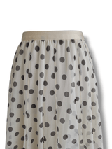 Jupe en tulle crème à pois gris et taille élastique.
