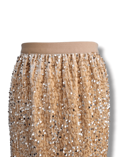 Paillettes : Des détails subtils et brillants donnent à la jupe une touche glamour.
